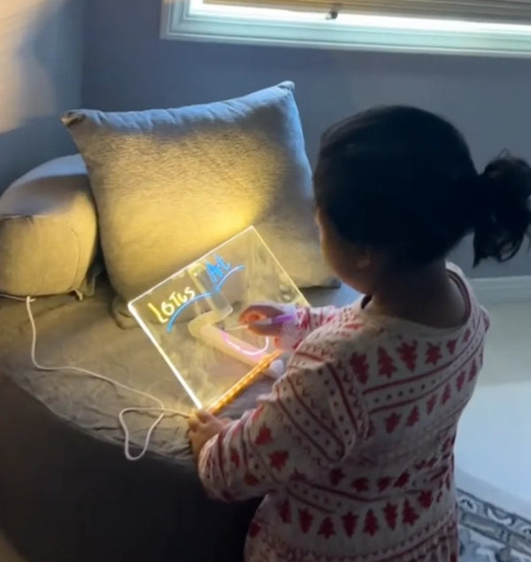 "Dette tegnebrettet er magisk! Barna mine elsker det, og de kan sitte i timevis og lage fantastiske lysende tegninger. Neonfargene lyser så fint, og det er superenkelt å tørke bort og starte på nytt. Perfekt gaveidé – anbefales!"